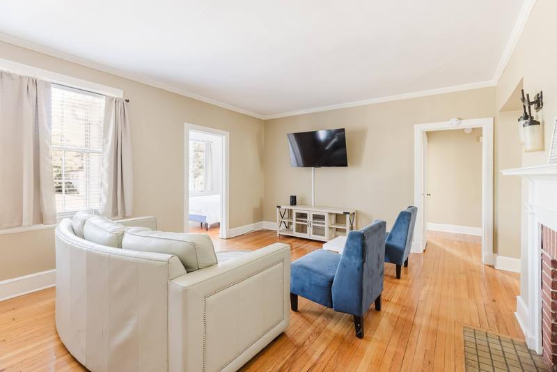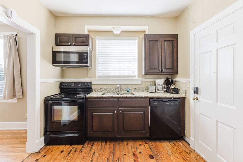 This large one of a kind unit is located on the 2nd floor. Including 2 beds and 2 bath with a bonus sunroom. Located conveniently with 1 minute of Phoebe Putney Hospital. The apartment comes equipped with hardwood floors throughout, stacked washer/dryer, stove, refrigerator, dishwasher, garbage disposal. Toping this all off with granite countertops in the kitchen extending to both bathrooms, Ending with a beautiful fireplace for your comfort. 1107 N Madison is located in the historic district, in a building with a total of only 4 units. Pets are allowed with restrictions.